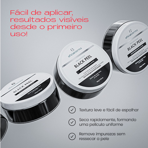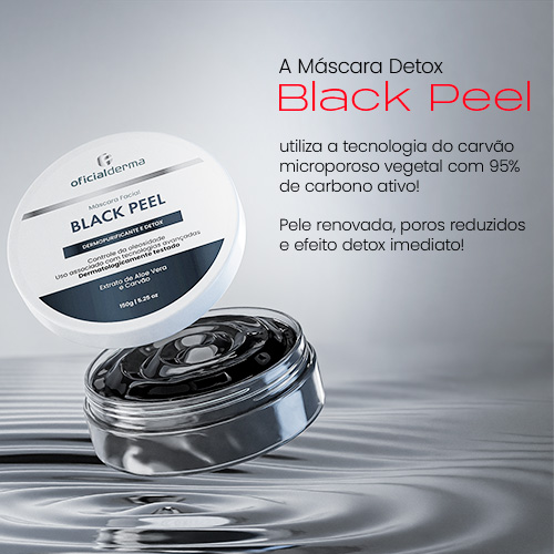 A Black Peel é uma máscara com uma fórmula inovadora que combina carbono microporoso vegetal com 95% de carbono ativo e extrato de aloe vera. Essa dupla poderosa atua removendo impurezas, estimulando a oxigenação da pele , equilibrando a oleosidade, e melhorando a textura da pele. Ideal para quem sente a pele mais oleosa, com poros dilatados ou precisa de um detox rápido na rotina de skincare.